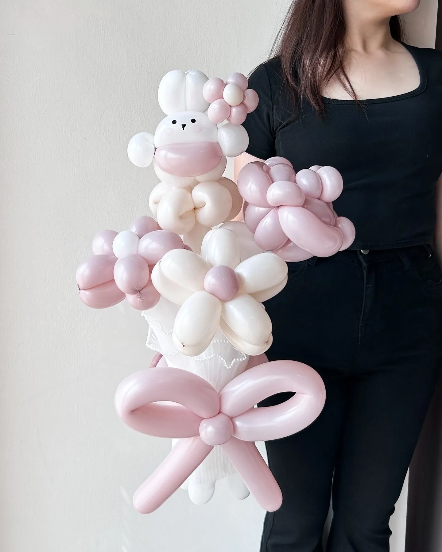 Heart Shape Bear Balloon Flower (Pastel Pink & Black)